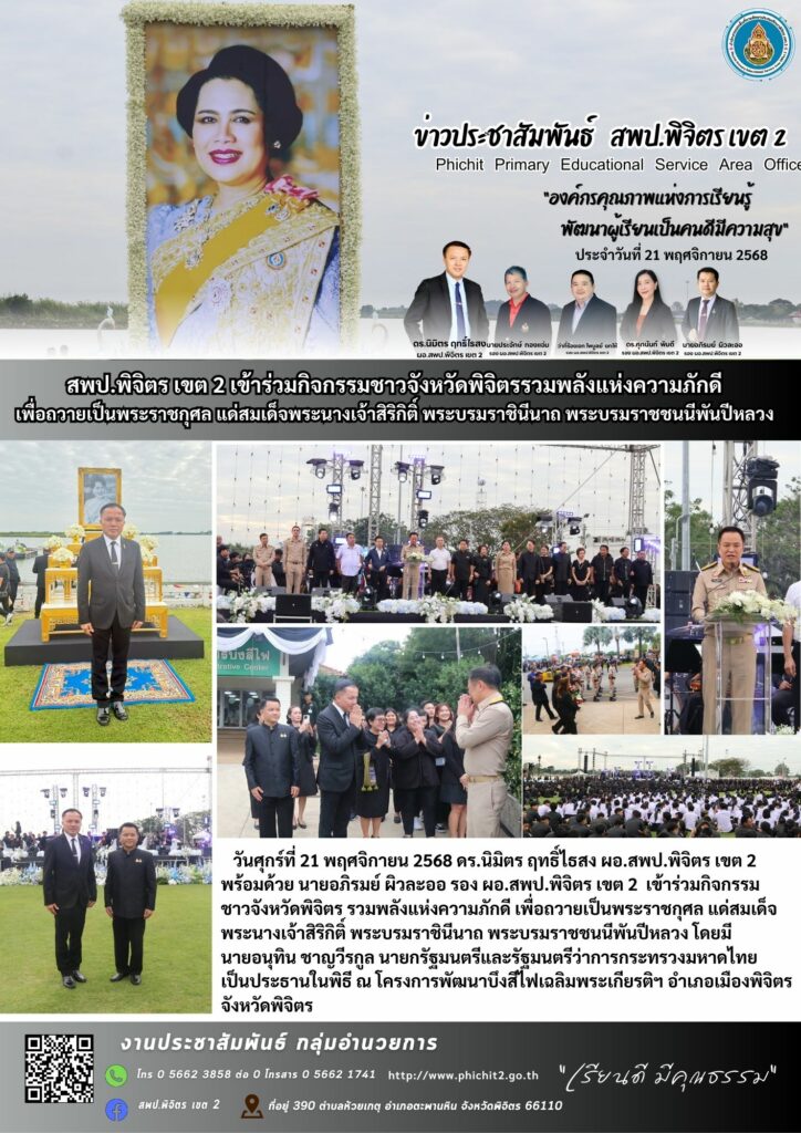 สพป.พิจิตร เขต 2 เข้าร่วมกิจกรรมชาวจังหวัดพิจิตรรวมพลังแห่งความภักดี เพื่อถวายเป็นพระราชกุศล แด่สมเด็จพระนางเจ้าสิริกิติ์ พระบรมราชินีนาถ พระบรมราชชนนีพันปีหลวง