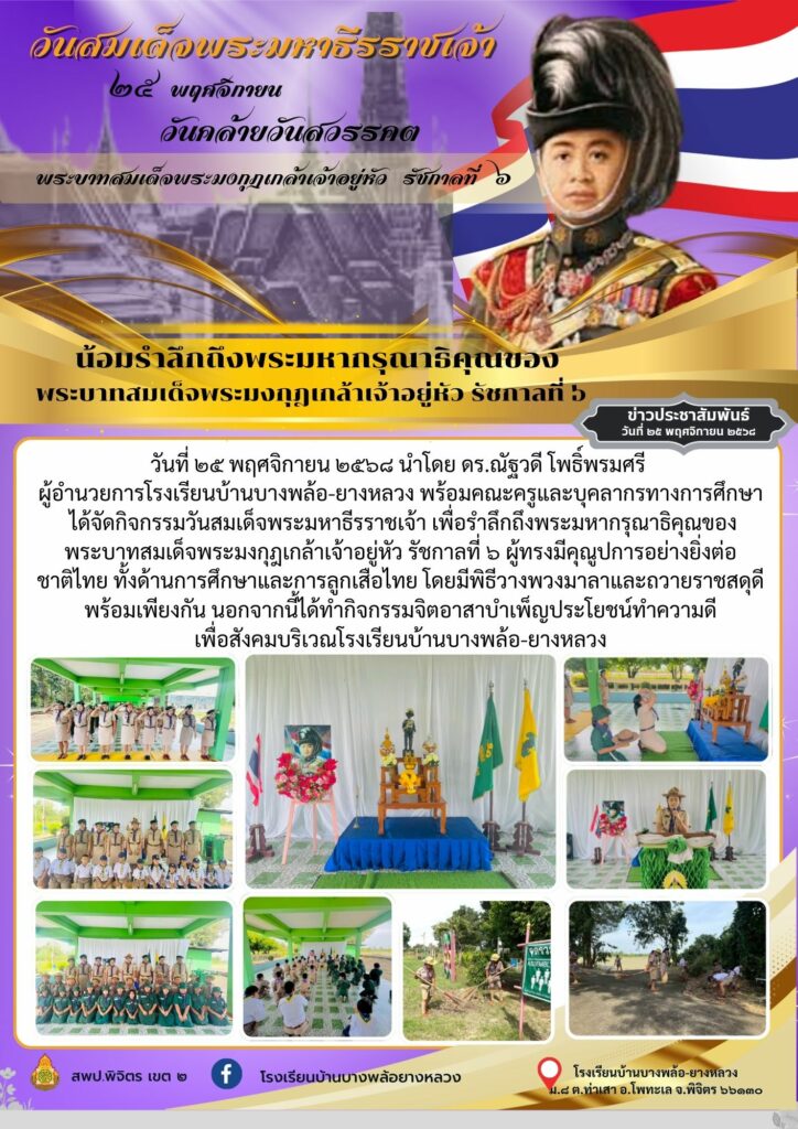 กิจกรรมวันสมเด็จพระมหาธีรราชเจ้า เพื่อรำลึกถึงพระมหากรุณาธิคุณของ พระบาทสมเด็จพระมงกุฎเกล้าเจ้าอยู่หัว รัชกาลที่ ๖