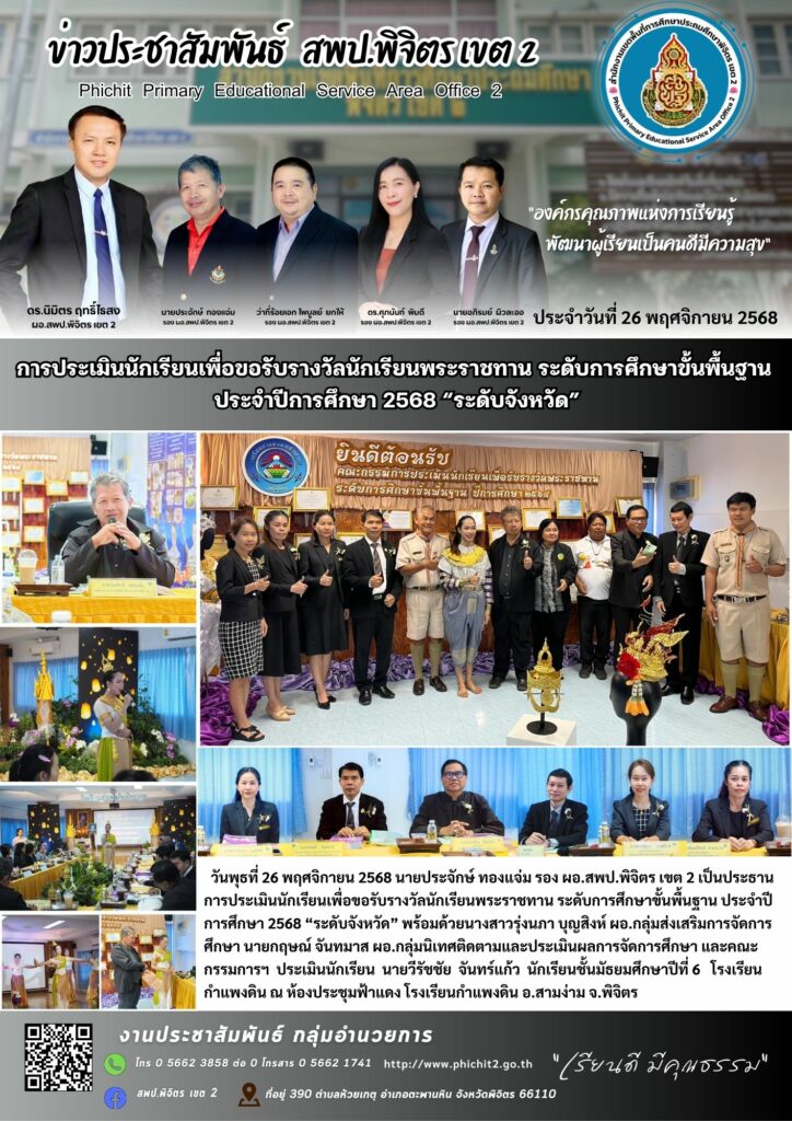 การประเมินนักเรียนเพื่อขอรับรางวัลนักเรียนพระราชทาน ระดับการศึกษาขั้นพื้นฐาน ประจำปีการศึกษา 2568 “ระดับจังหวัด”