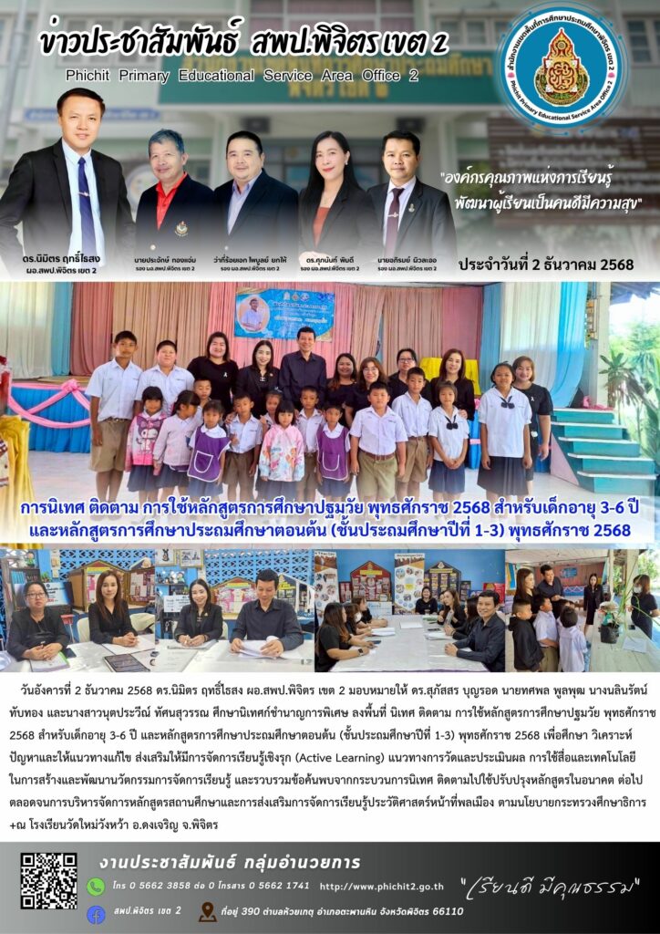 การนิเทศ ติดตาม การใช้หลักสูตรการศึกษาปฐมวัย พุทธศักราช 2568 สำหรับเด็กอายุ 3-6 ปี และหลักสูตรการศึกษาประถมศึกษาตอนต้น (ชั้นประถมศึกษาปีที่ 1-3) พุทธศักราช 2568