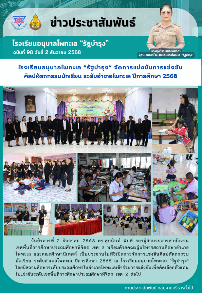 โรงเรียนอนุบาลโพทะเล “รัฐบำรุง” จัดกิจกรรมการแข่งขันศิลปหัตถกรรมนักเรียน ระดับอำเภอโพทะเล จังหวัดพิจิตร