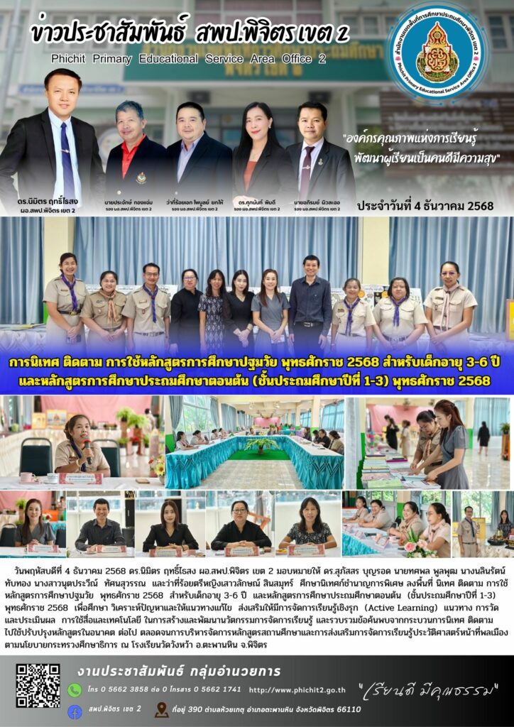 การนิเทศ ติดตาม การใช้หลักสูตรการศึกษาปฐมวัย พุทธศักราช 2568 สำหรับเด็กอายุ 3-6 ปี และหลักสูตรการศึกษาประถมศึกษาตอนต้น (ชั้นประถมศึกษาปีที่ 1-3) พุทธศักราช 2568