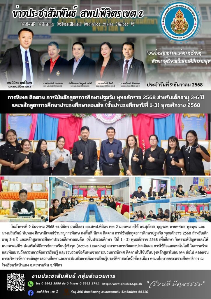 การนิเทศ ติดตาม การใช้หลักสูตรการศึกษาปฐมวัย พุทธศักราช 2568 สำหรับเด็กอายุ 3-6 ปี และหลักสูตรการศึกษาประถมศึกษาตอนต้น (ชั้นประถมศึกษาปีที่ 1-3) พุทธศักราช 2568