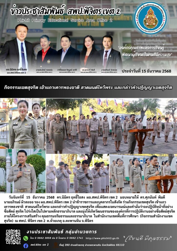 กิจกรรมเขตสุจริต เข้าแถวเคารพธงชาติ สวดมนต์ไหว้พระ และกล่าวคำปฏิญญาเขตสุจริต